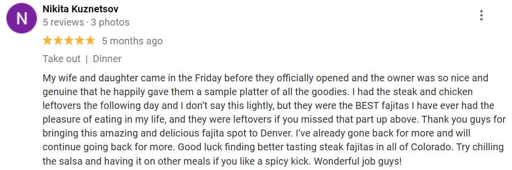 Fajita Pete's - Centennial is the go-to spot for authentic Tex-Mex cuisine that you can enjoy from the comfort of your own home or office. Our premium menu features mouth-watering dishes, including sizzling fajitas, hearty quesadillas, and cheesy queso, all made with only the freshest ingredients. We offer easy and convenient phone or online ordering for delivery or pickup, and as a loyalty member using our app you will earn incredible rewards. With our online ordering system, getting your favorite TexMex dishes has never been easier. Whether you're craving a quick lunch or a family dinner, Fajita Pete's - Centennial is the perfect destination for a delicious and hassle-free meal. So, skip the crowded restaurants and let us bring the tastes of Texas and Mexico straight to your door! Call us or order online today for delivery or pickup. Our friendly staff provides exceptional customer service and will take great care of you and those you care about. Some of the areas our customers come from are Centennial, Southglenn, Castlewood, FoxField, Dream House Acres, Walnut Hills, Piney Creek, Willow Creek, Ridgeview Hills South, Highlands 460, and The Knolls.